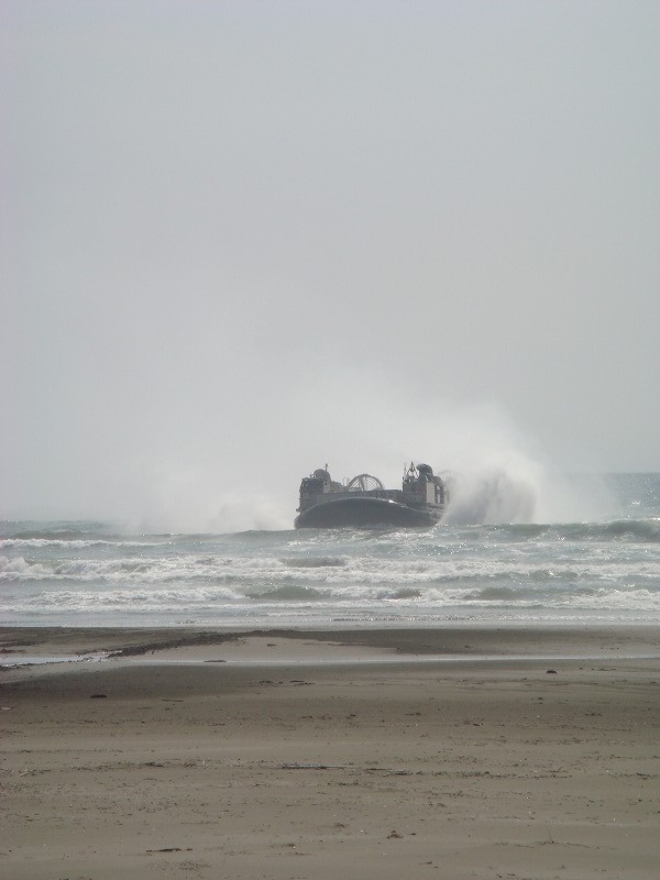 「しもきた」艦載のLCACが上陸訓練をしていた時の・・