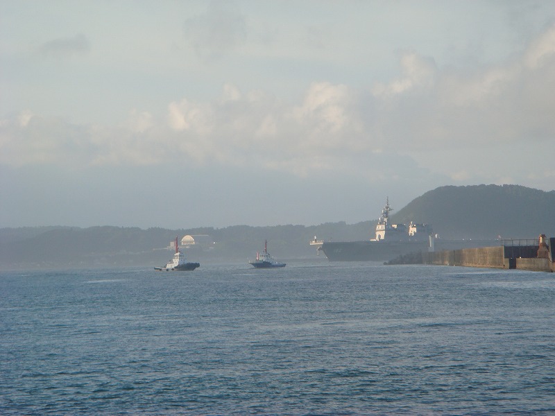 竹島の後ろから「いせ」が姿を現し